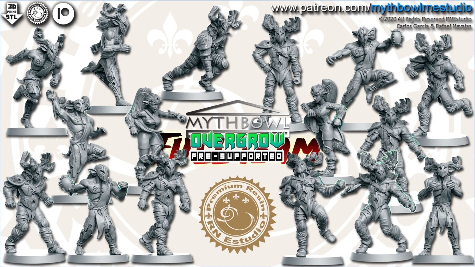 Fantasy Football – “Overgrow” Wood Elves – Full team, 16 models! – Player E Player/Primed/Clear