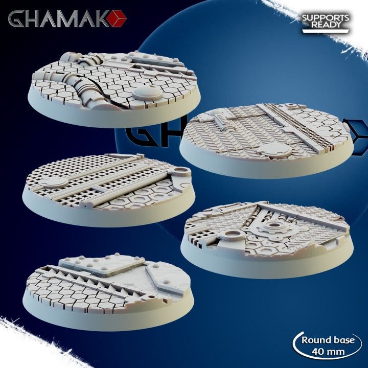 The perfect round bases for your space army. This set includes 5 round 40mm bases. These beautiful miniatures are made of high-quality resin and printed in 4k resolution! Some assembly required.