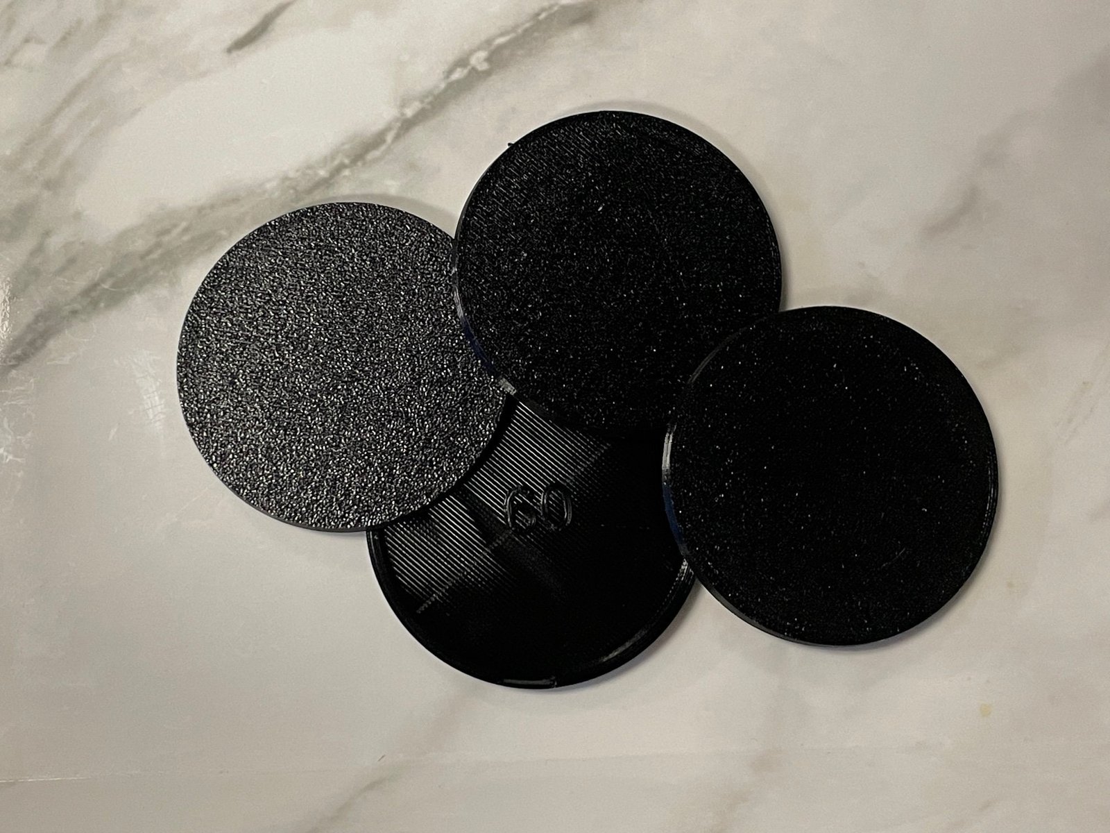 This listing is for custom printed bases for your miniatures, it includes 3 60×60 circular plastic bases in black. We designed these bases to be hollow bottomed and included their size printed on the bottom to make them easier to identify and use!