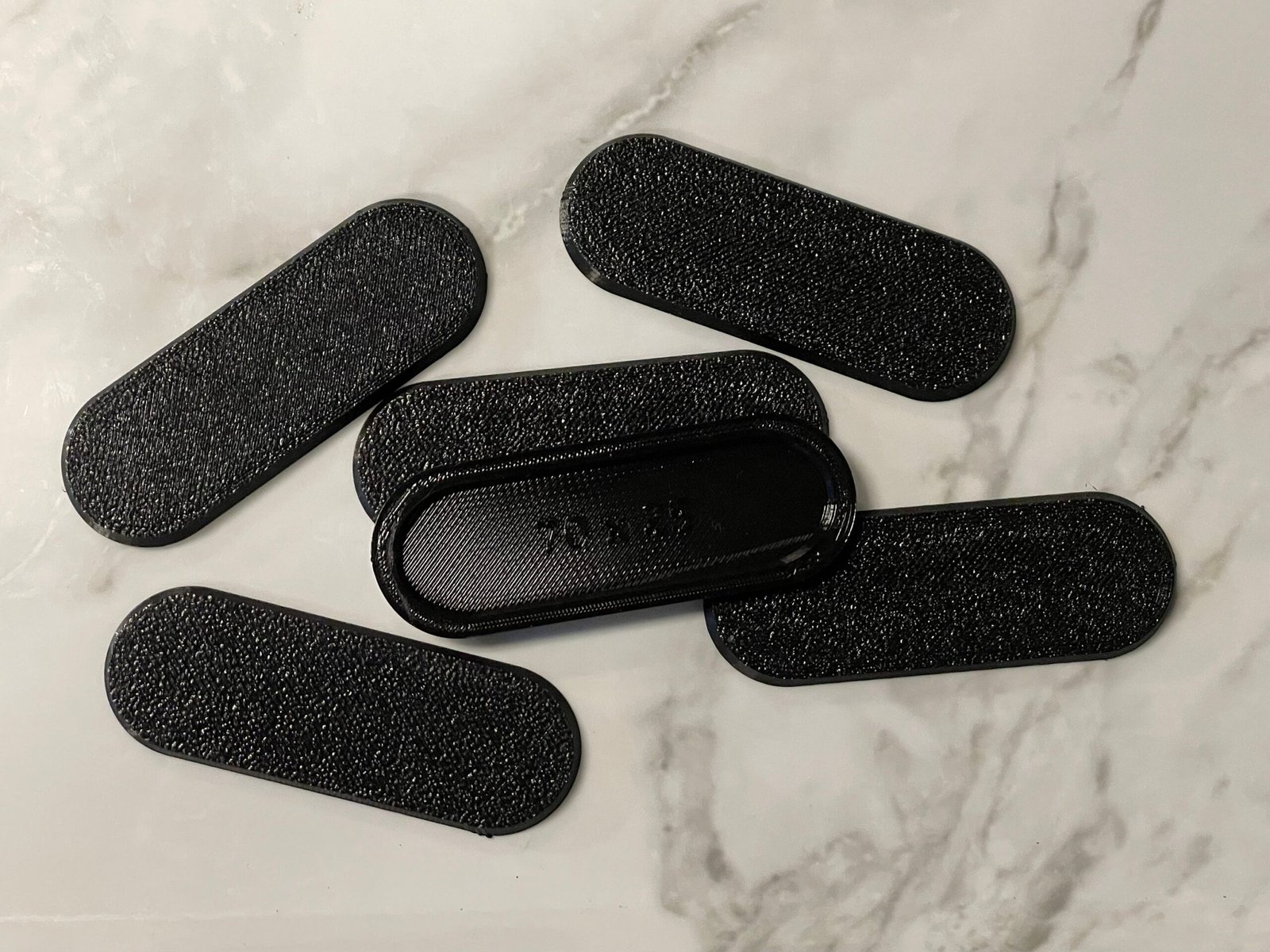 This listing is for custom printed bases for your miniatures, it includes 5 70x25mm oval plastic bases in black. We designed these bases to be hollow bottomed and included their size printed on the bottom to make them easier to identify and use!